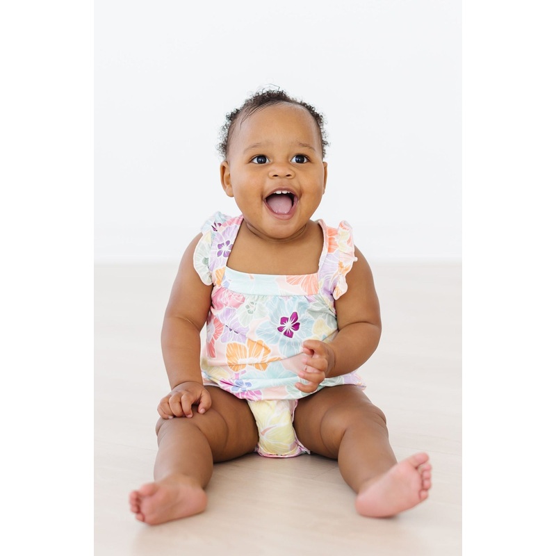 SALE Hibiscus Floral Ruffle Cross Back Romper
