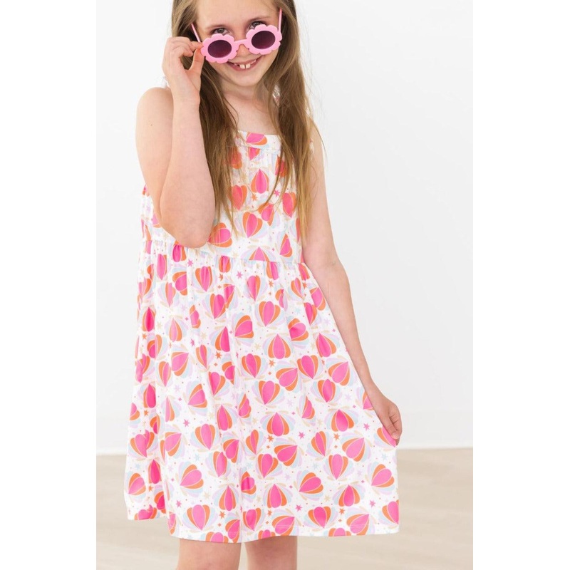 Our Ruffle Cross Back Dress is perfect for summer! Straps criss cross in the back and are finished off with a sweet ruffle on the shoulder. Also available in a matching baby romper! Perfect for family matching.Super soft fabric stays bright wash after wash