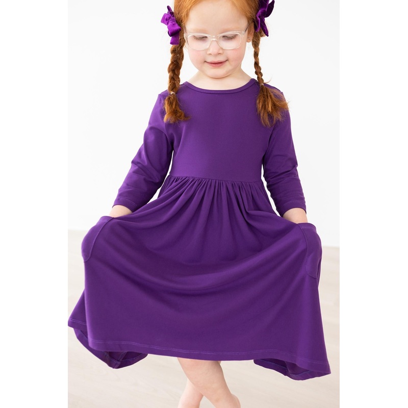 The perfect dress for school, special occasions, and everyday play! Designed by a mom and a dad. Mom wanted something twirly, comfortable and easy to wash. Dad wanted something easy to get on his chubby, big headed toddler. Designed with a scoop back for quick on and off, and higher neckline for modesty. Pair with Twirl Shorts or Leggings for the perfect everyday outfit.