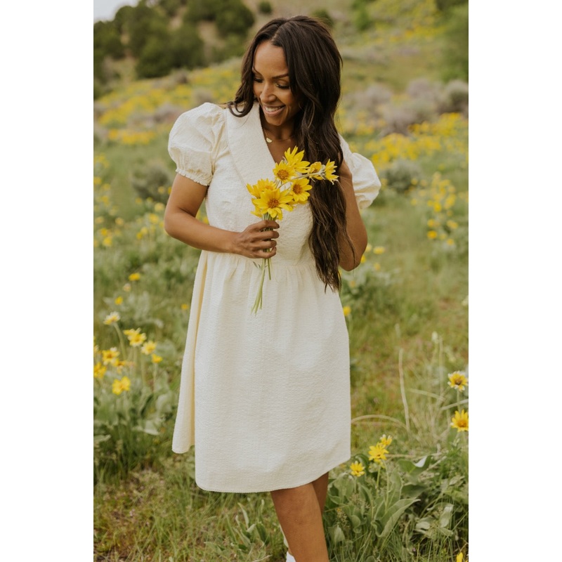 Every woman needs a little cream dressand it just so happens that the Almaden Dress is just that but much more elegant and chic. With soft textured fabric, working buttons, a dainty collar, and puff sleeves, this dress is the perfect key piece to add to yo