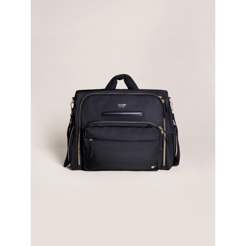 The Satchel from JuJuBe features a lightweight, versatile construction with 14 storage compartments, removable stroller straps, and a trolley sleeve for travel, all in a distinctive silhouette. Convertible straps make it wearable in three different waysas