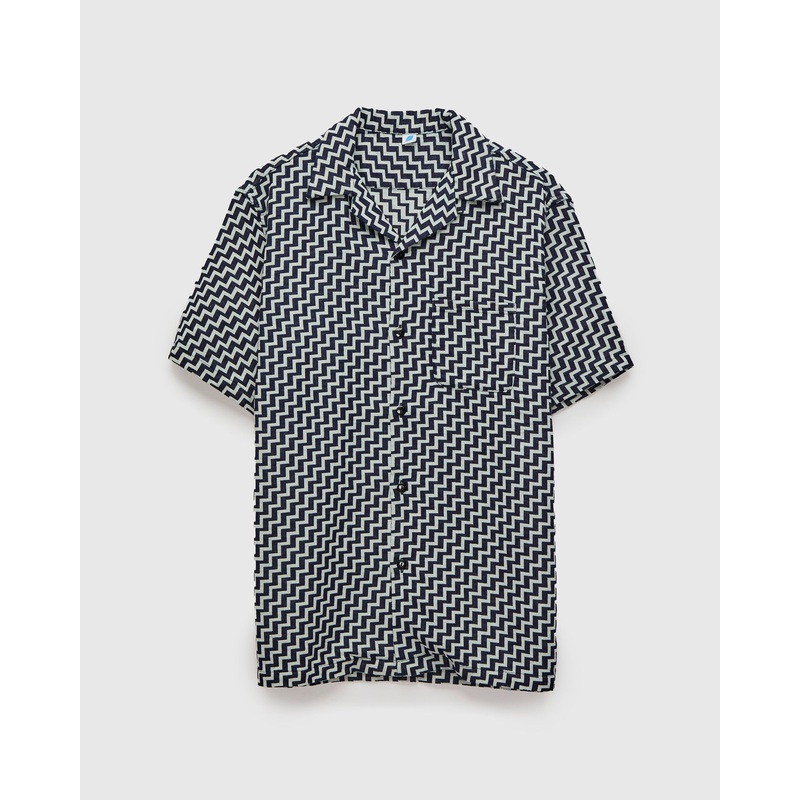Saw Jacquard Open Collar Shirt in Indigo