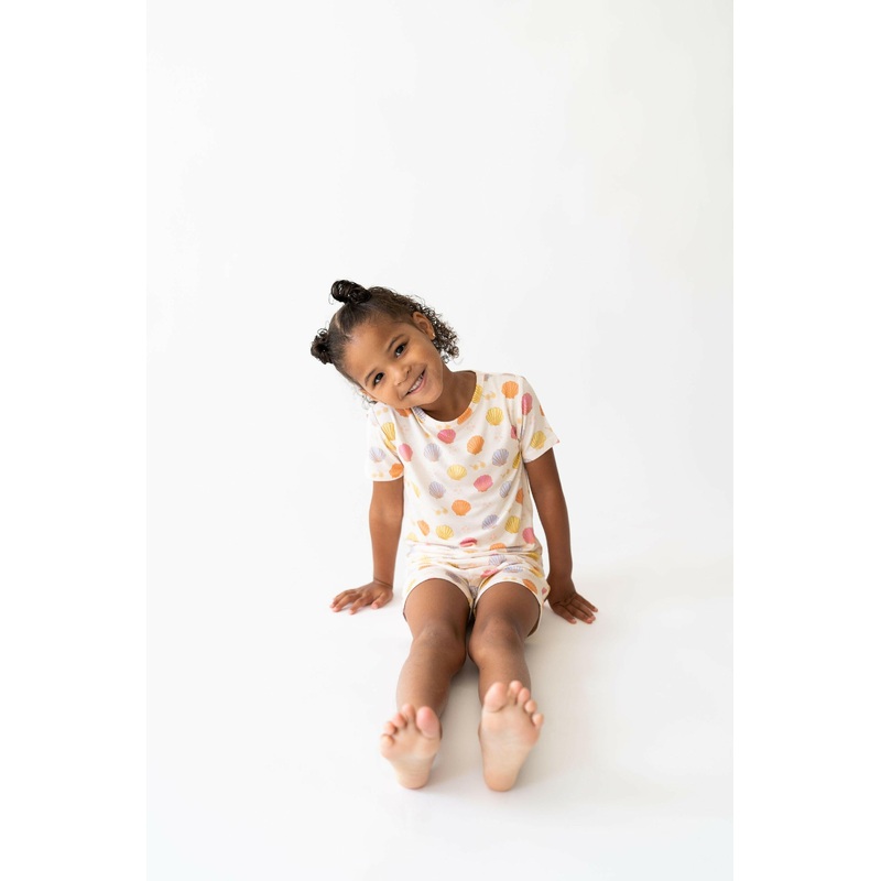 Extremely soft and stretchy95% viscose from bamboo; 5% spandexMachine wash cold and tumble dry lowIncluded is a short sleeve top and matching shortsNo interior tagsNot treated with flame retardants