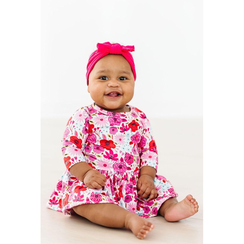 Our twirl bodysuit is the newest addition to our twirl line. Perfect for babies! Snap closure for diaper changes AND no need for bloomers. Mix and Match our Secret Garden print collection for sisters, cousins, or BFFs.