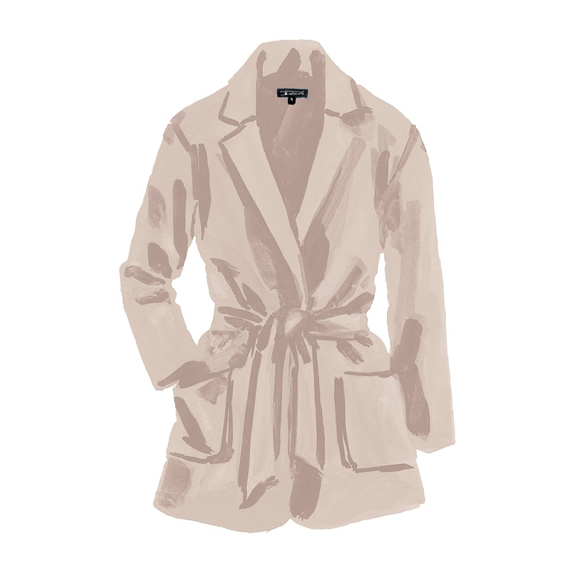 Self-Tie Wool Blazer (No. J8823). Old-world blazer fit and stylewith some modern, post-war accoutrement. Wonderful tropical-weight wool (270 grams). Self-fabric waist belt. Upper-thigh length. Fully lined in taffeta. Light shoulder pads. Princess seams. Im