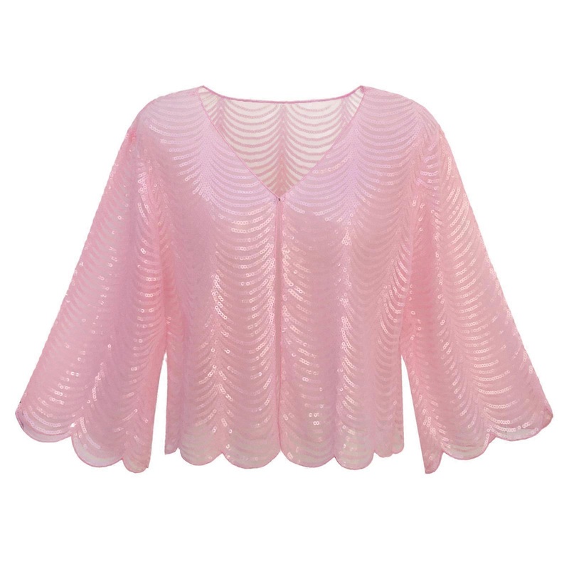 Use selected mesh and polyester, this shawl boasts a see through designs decorated with sequined patterns, with open front designs.