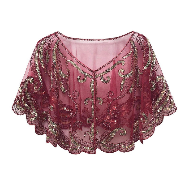 Sequins Shawls Princess Wrap Shrug Scarf Handmade Dress Accessories for Women Costume Theme Party Wine red and gold | Fruugo SG