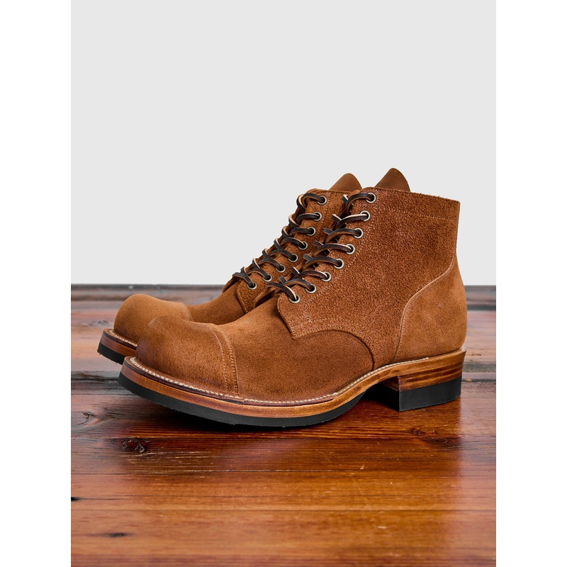 This iteration features an Aged Bark Roughout leather courtesy of Horween Tannery. This tannage features a hairy nap and velvet soft touch. The boots are anchored by Dr.Sole Supergrip soles and fused together using stitch down construction. Finished with tonal stitching, branded leather insole, and brogue toe caps.