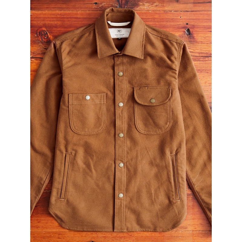 • The signature Service Shirt from Rogue Territory is a reinterpreted shirt jacket style. This installment is made from a heavyweight Japanese brushed flannel fabric. Rogue Territory’s heavy flannel fabric sports a soft touch and substantial heft. The shirt features a rugged design built around two primary chest pockets, two hand pockets at the waist, and antique snap buttons, with vintage triple-needle stitching throughout as a nod to the trade of classic workwear.
