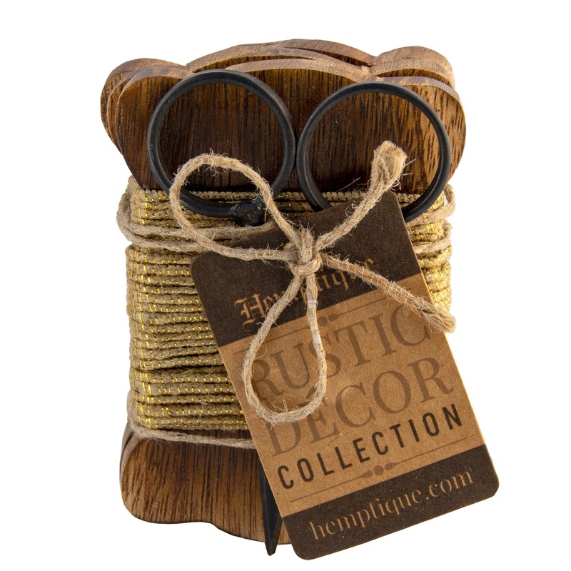 These vintage inspiredwood bobbin card sets are perfect for gift giving! Each set comes with 3 varieties of jute and metallic cord wound on a flat bobbin card with a handy pair of small scissors attached.Wood Bobbin Card with ScissorsJute Twine with Metall