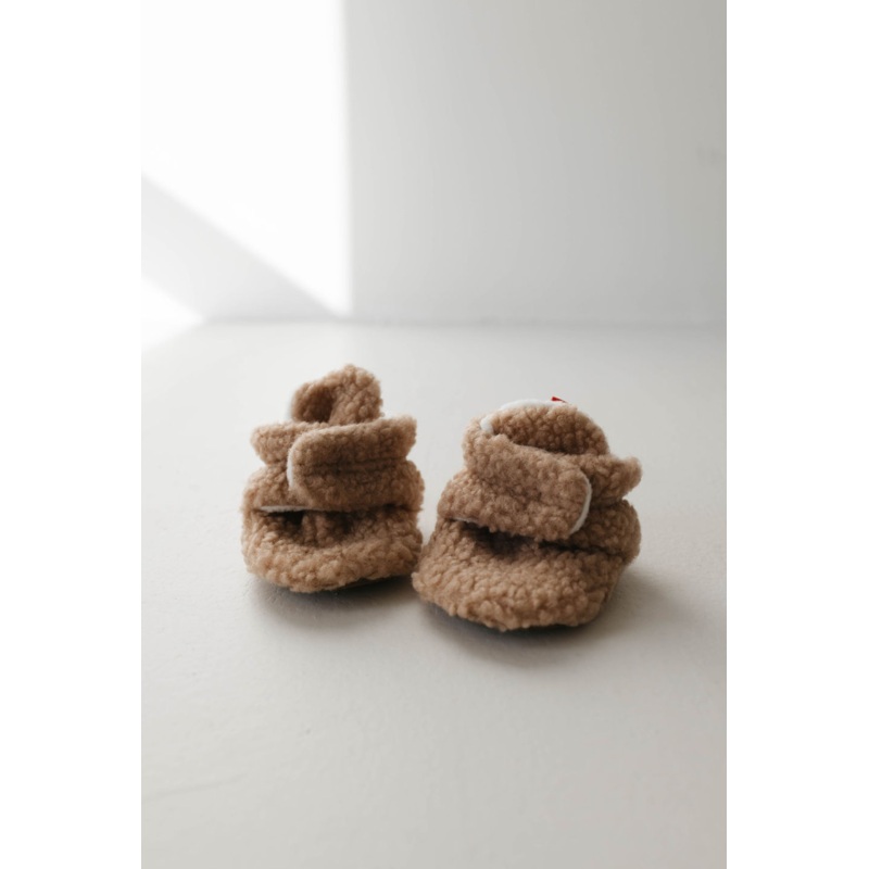Sherpa Baby Booties keep little feet warm and cozy with their fluffy sherpa material. The velcro closures make them easy to slip on and off, while the adjustable elastic ensures the booties fit comfortably for babies ages 0-18 months. Keep your baby's feet