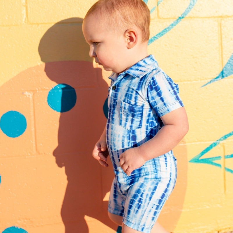 Shibori Polo Romper|3-6|6-12|12-18|18-24