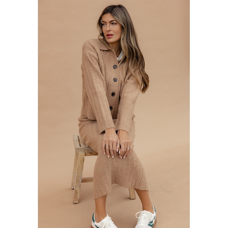 The Shining Light Sweater Cardigan features large functional buttons, a classic collar, and a thick ribbed knit. We love this paired with the matching skirt but you can wear it with everything already in your closet!