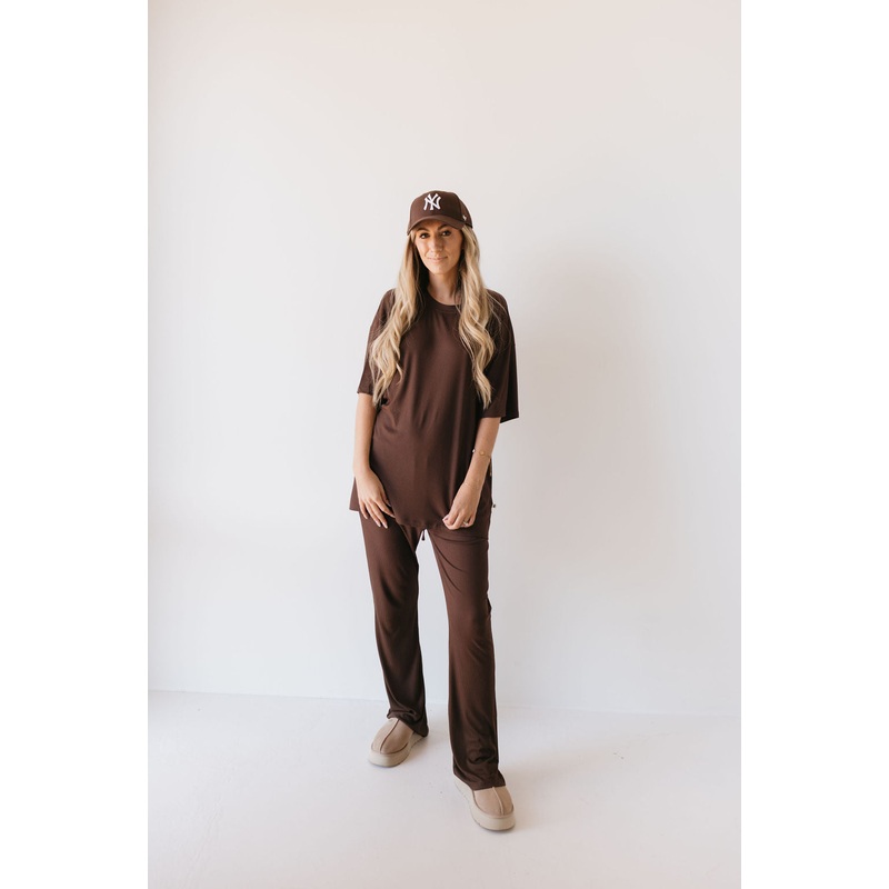 Our staff’s top pick is the bamboo oversized short sleeve lounge set! We adore the ultra-cozy oversized tee and the stylish slight flare pants.