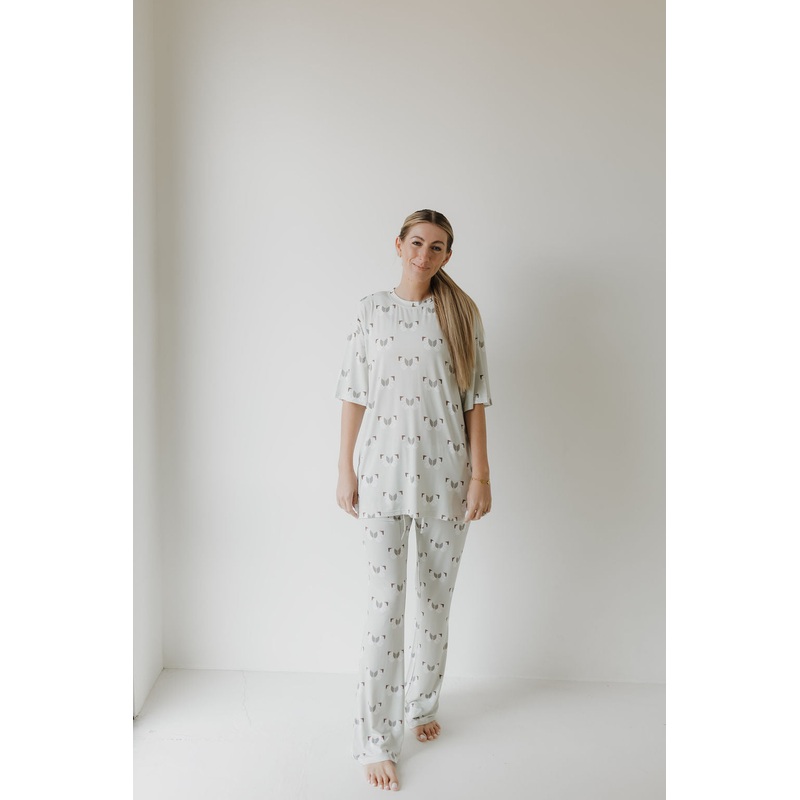 Our staff's top pick is the bamboo oversized short sleeve pajama set! We adore the ultra-cozy oversized tee and the stylish slight flare pants. Dont forget to check out the matching baby and toddler pajamas in this adorable print!Sizes Available : Small -