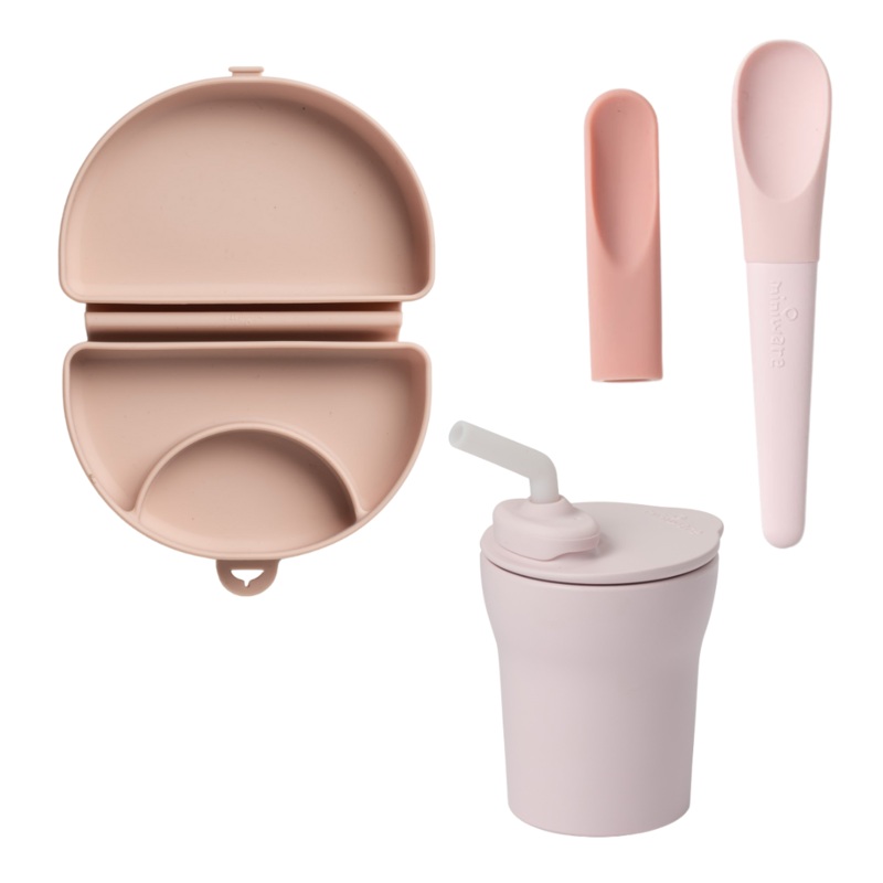 Sip and Go with this inclusive set! Enjoy meals away without the stress -a suction plate which closes & locks for compact storage, while the 2in1 spoon grows with your child's capabilities, and the 3in1 cup help your child explore their oral motor skills.