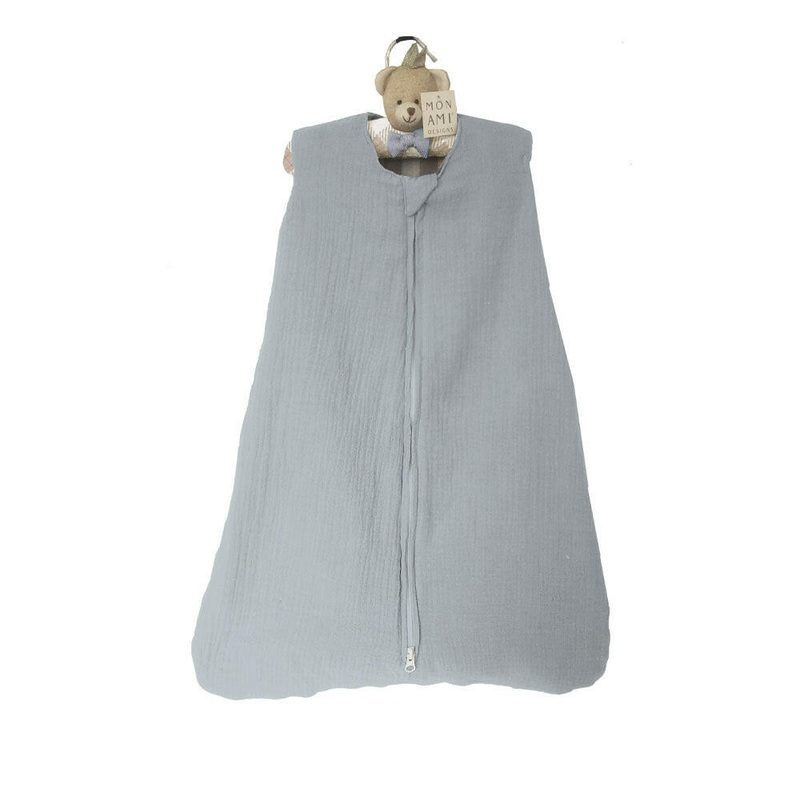 Stunningly simple, double lined muslin sleep sack made of breathable cotton.Comes on a whimsical padded hanger for a beautiful gift!Ages 0 - 6MTotal length 24 in / 61 cm