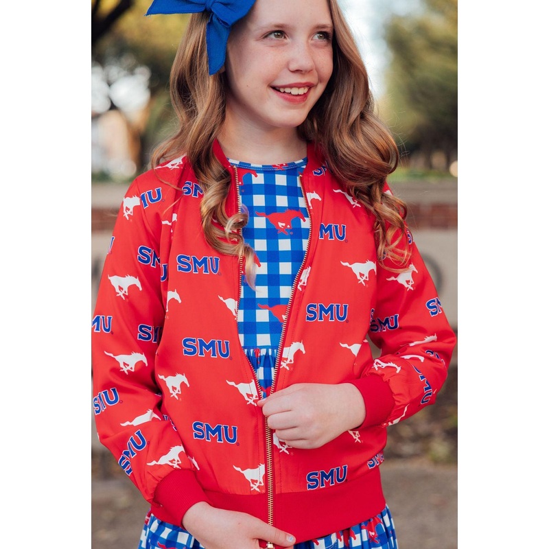 Let your little Pony show off her SMU pride with this Jacketperfect for game day, spirit day, or everyday play! Designed by a proud SMU alum for his daughters, this dress is made for young fans who love to cheer. Mix and match our Southern Methodist Univer