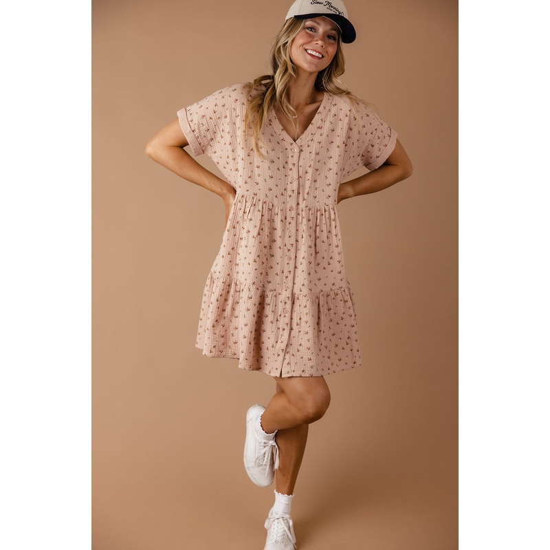 This cute dress will have you feeling so high school. Featuring functional buttons, a tiered skirt, and dainty florals, this dress boasts beauty and simplicity. Pair with sneakers and hit the town with your girlfriends.unlinedfunctional buttons*FINAL SALE*