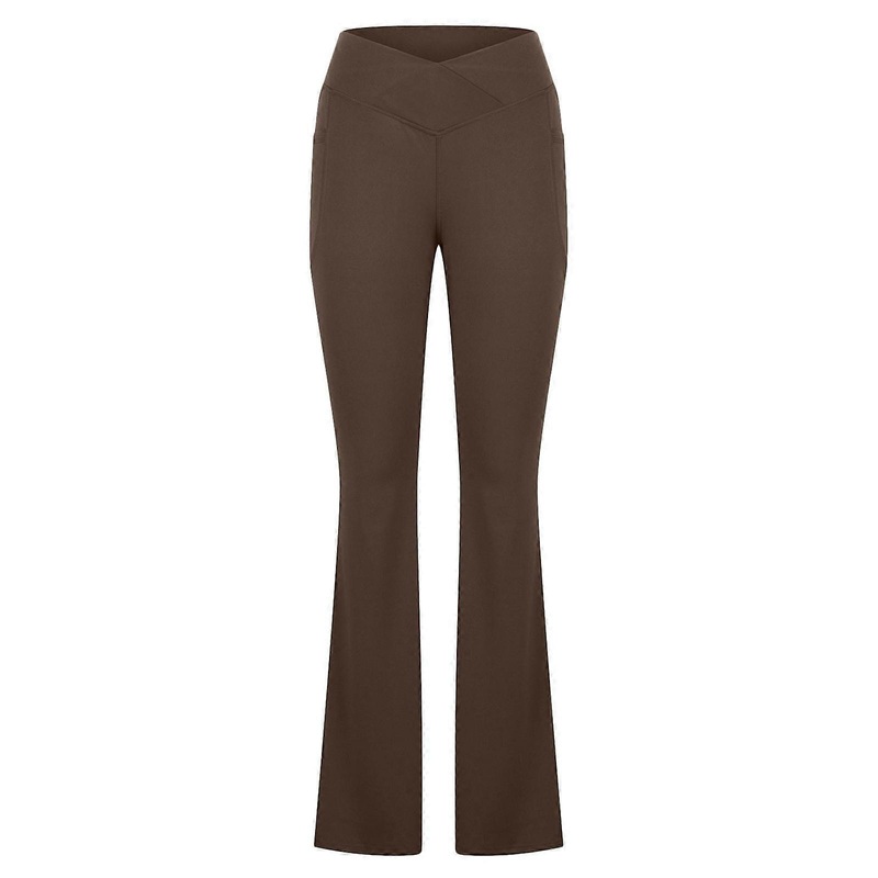 Solid Color Casual Long Tousers High Waist Slimm Wide-Leg Yoga Fitness Pant Workout Bodycon Long Pantie for Women Girl Brown XL | Fruugo SG