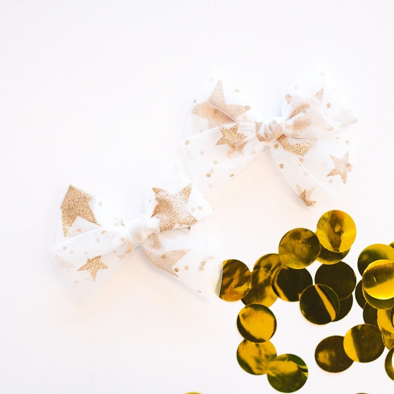 Pigtail Set - Set of two bows on clips for pigtails. Save 10% when buying in a set!A sweet and simple hand-tied bow made out of a high-quality, tulle fabric.Each bow measures approximately 4.5" x 2.5"and is handmade with love.Two different style options:1)
