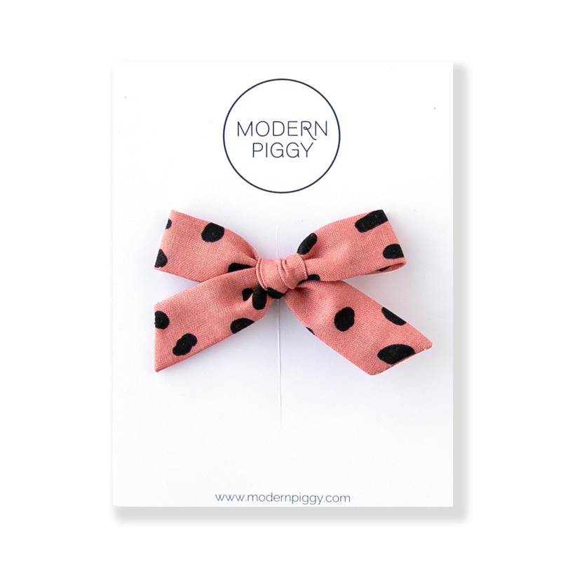 A sweet and simple hand-tied bow made out of a high-quality, cotton fabric.Each bow measures approximately 3.5" x 1.5 and is handmade with love.Two different style options:1) Alligator clip - Best option for your older babes. The clip can easily be rotated