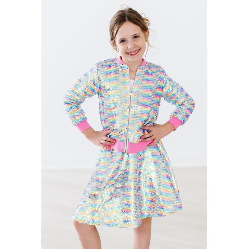 You asked, we listened! Our sequin twirl skirts are back and better than ever, but this time with attached SHORTS. Mix and match with our tees and jackets to sparkle up any outfit! Perfect for birthdays, holidays, and special occasions. This skort adds the