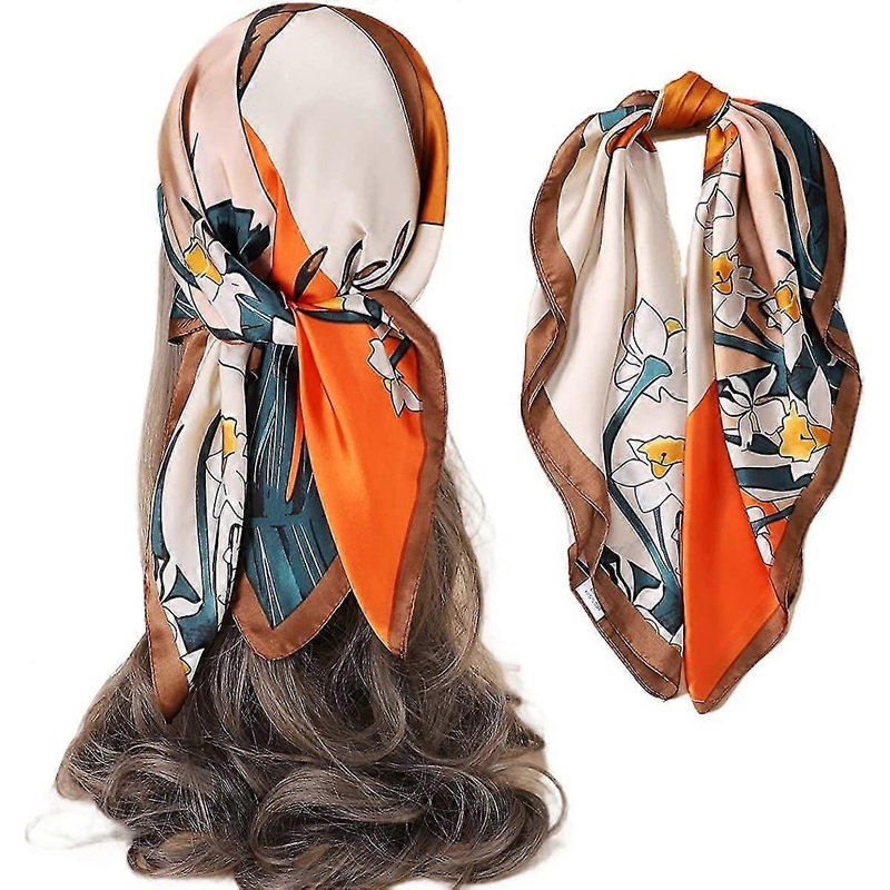 Description Silk Scarf Women Lady, Square Size: 27.5" x 27.5" ( 70 CM x 70 CM). Material: Satin Scarf Women Lady, Made of high quality satin material, smooth, lightweight, super soft and comfortable, easy to carry. Fastening: Adjustable Regular Silk Head S