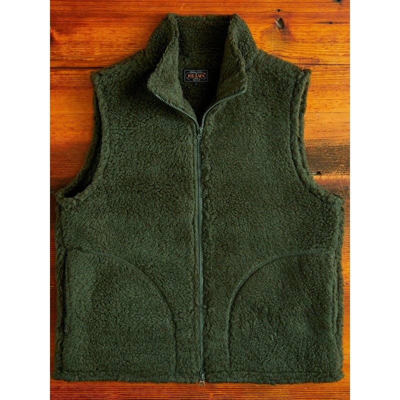DetailsSizingBrand InfoThis cozy Boa Vest from BEAMS PLUS features a wool-poly blend fabric with a soft fleece like texture and heat insulating properties. Cut in a standard fit, the vest features a stand collar, two hand warmer pockets at the waist, and t