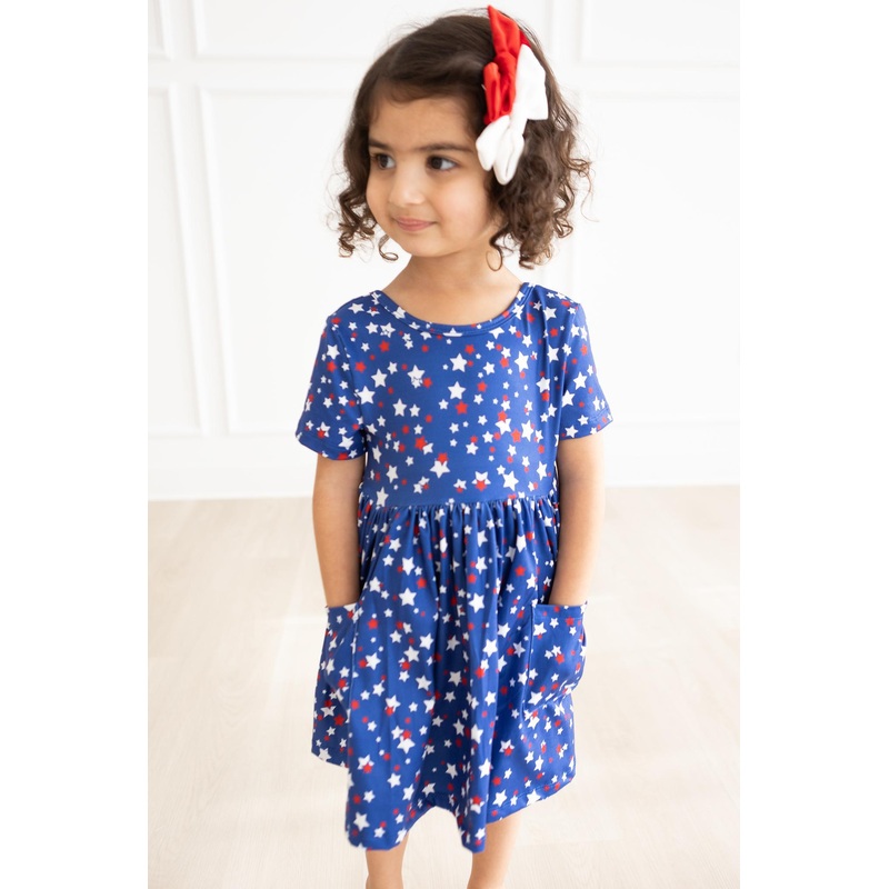 The perfect dress for school, special occasions, and everyday play! Designed by a mom and a dad. Mom wanted something twirly, comfortable and easy to wash. Dad wanted something easy to get on his chubby, big headed toddler. Designed with a scoop back for quick on and off, and higher neckline for modesty. Pair with Twirl Shorts or Leggings for the perfect everyday outfit.