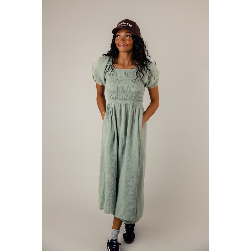 The Stars and Butterflies Smocked Midi features a smocked bodice, puff sleeves, and mineral-washed fabric. This gorgeous dress is fit for all occasions! Wear on a night out with your special someone or with sneakers and a denim jacket for a dressed down look.