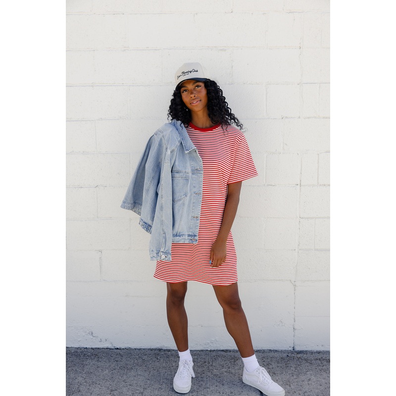 Get ready to flaunt your patriotic spirit in style with the Stars and Stripes T-Shirt Dress! Available in two vibrant colors, this dress is perfect for celebrating any occasion with flair. Featuring a comfy crew neckline and a boxy fit, it's designed with