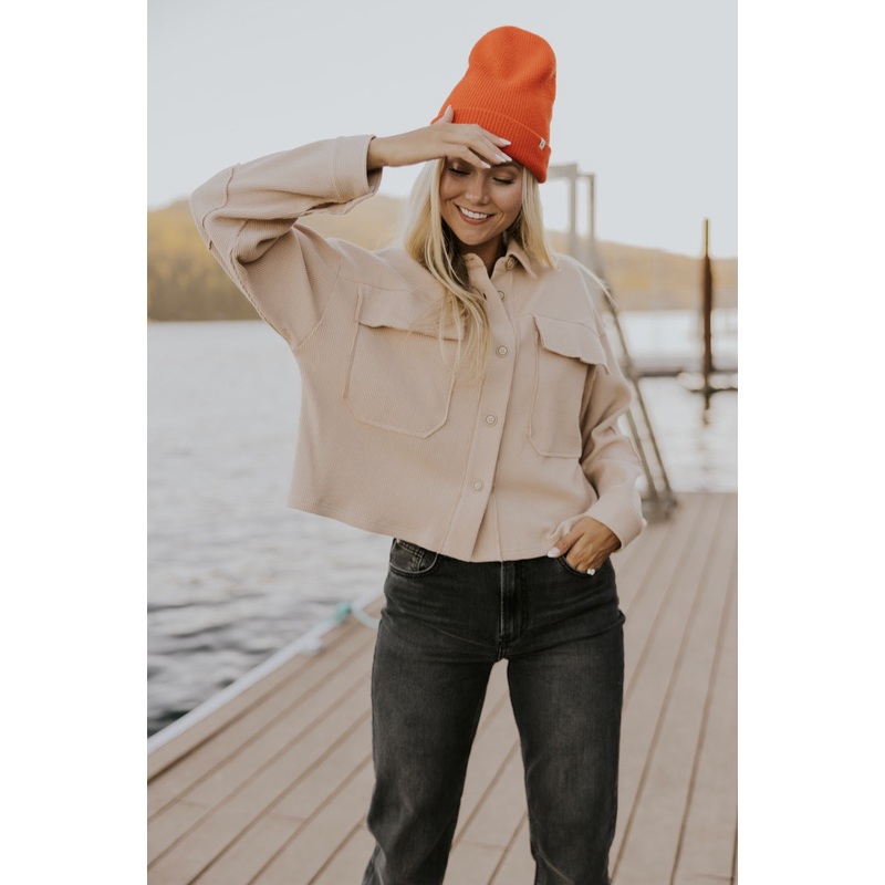 You asked for moreshackets+ since were overachievers we said hold my diet coke + proceeded to outdo ourselves. This cropped number is perfect to wearclosed with your favorite jeans oropen over graphic tees. It also features elbow patches and raw seam details that add to the perfection of these shackets.