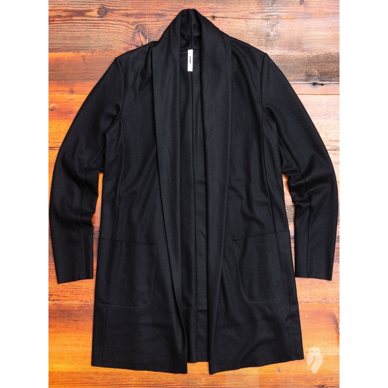Stole Collar Long Cardigan in Black Wool