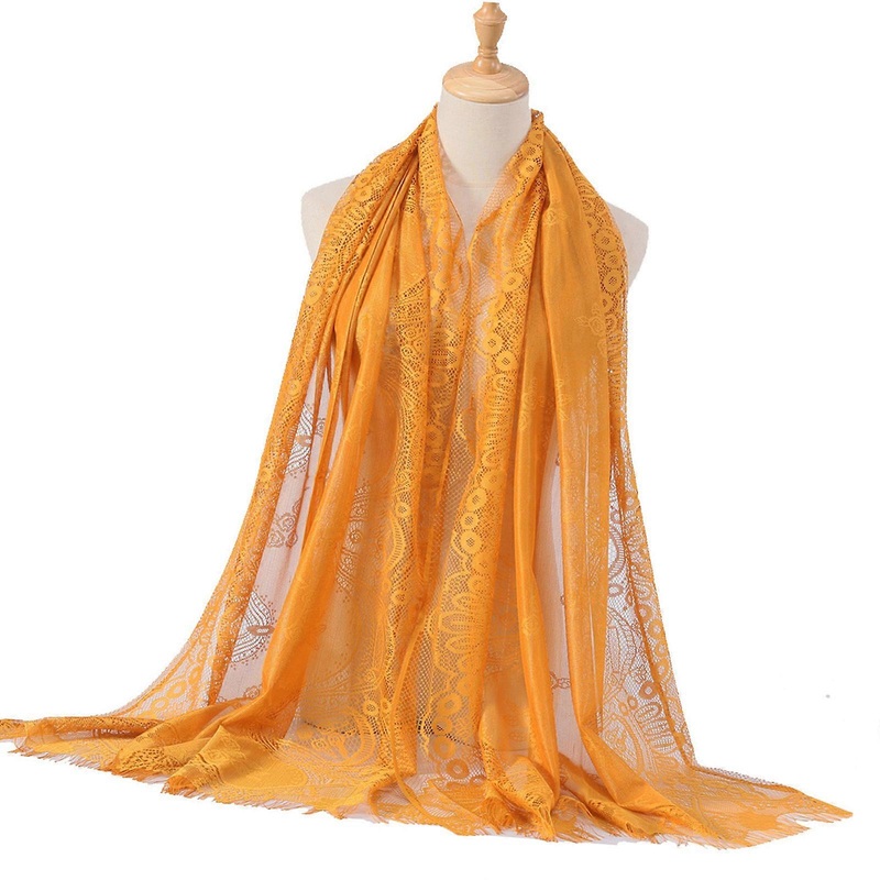 With intricated lace detailing and sheer design, this scarf wrap offers various styling as a shoulder wrap, head covering, or decorative accessory.