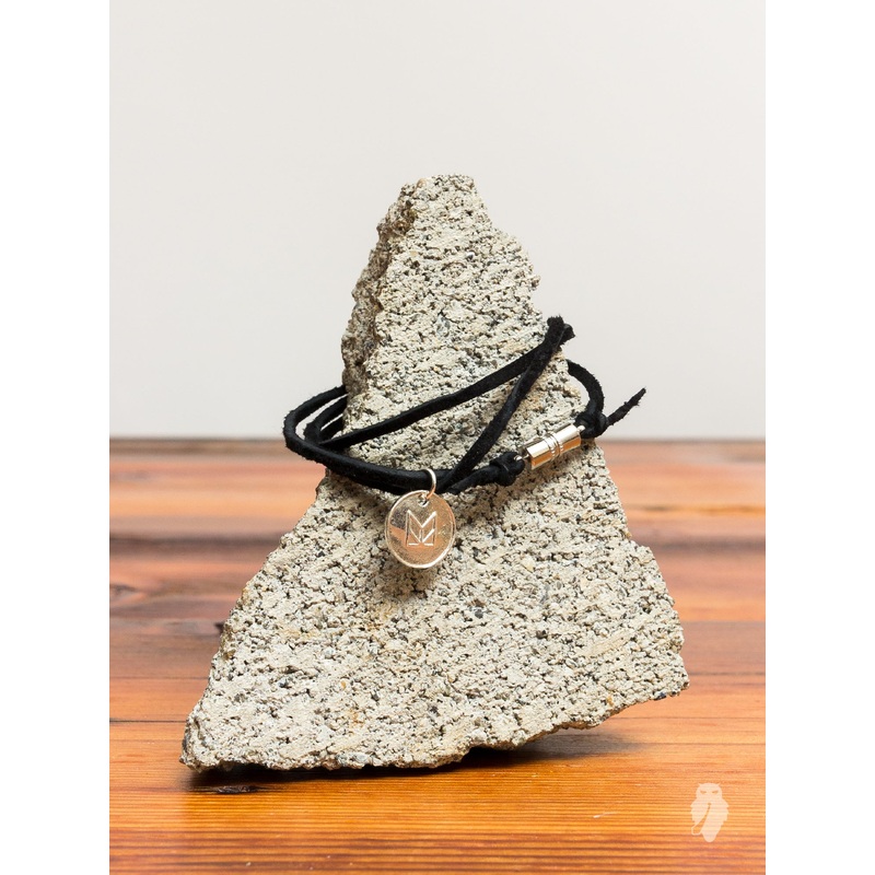 • This multi wrap bracelet from Maple is made using a rugged suede leather. The design features minimal branding with the inclusion of a removable sterling silver charm, and comes finished with a magnetic clasp closure for convenience.