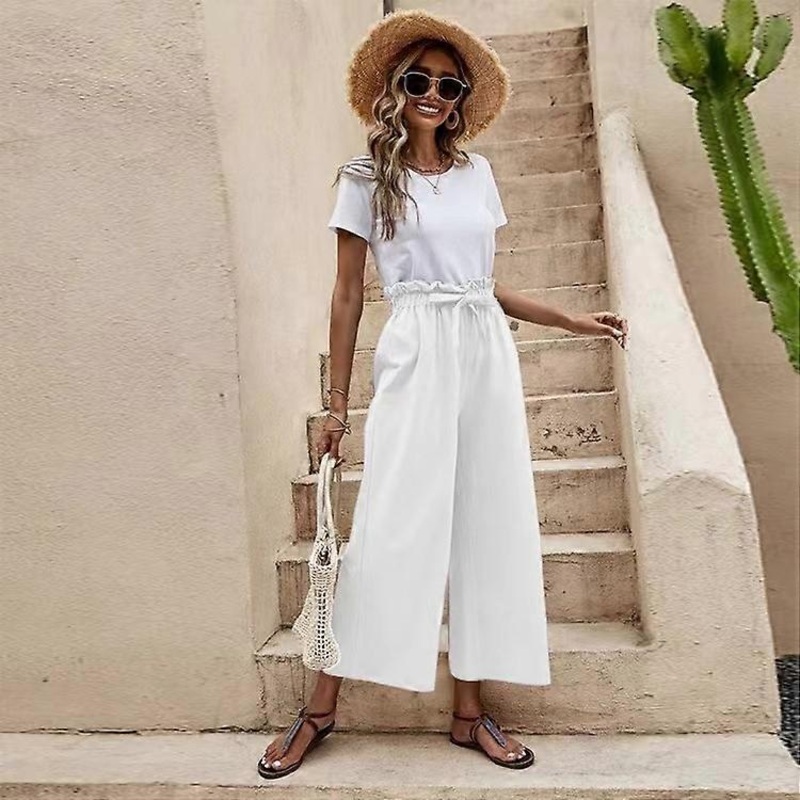 Fabric name: Cotton and linen Main fabric component: Cotton Main fabric component 2: Polyester fiber (polyester) Style: Wide-leg pants Pants type: Straight type Pants length: Nine-point pants Waist type: High waist Thickness: Thin Popular elements: Scratched Size: S, M, L, XL, XXL, XXXL Style type: Temperament commuting Main fabric component content: 80% (not included) -90% (included) Style: Commuting style Elasticity: Slightly elastic Main fabric component 2 content: 30% and below Stock type: Spot process: No ironing treatment