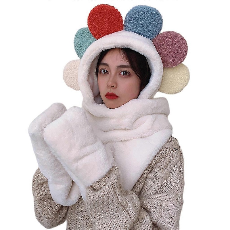 Sunflower Petal Women Winter Warm Soft Hood Scarf Snood Pocket Hats Gloves New Fashion Hooded Scarf Hat Glove White | Fruugo SG