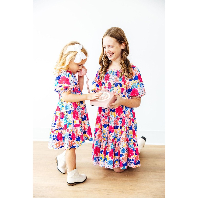 Our Smocked Ruffle Dress is Mila’s new favorite dress. From the moment she tried on the first sample, she didn’t want to take it off. She even wore the sample to school the next day. Smocked bodice is comfortable and stretchy. Ruffle skirt makes this dress extra twirl-worthy. Perfect for both formal occasions and everyday adventures. Your little one is sure to love this dress!