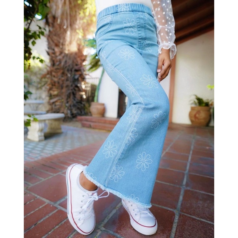 Retro, BB! THE classic bell bottoms are here and they are your new favorite staple! Pairwith a Maggie Cap Leo, graphic tee, or cute BB top to bring your mini’s style to the next level. This light wash denim style has an elastic band to make it an easy and comfortable must-have!