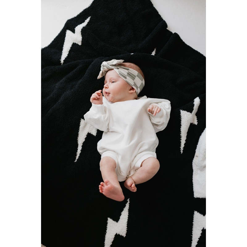 This sweatshirt romperis the perfect white color and the softest material. It features a snap closure making diaper changes a breeze!