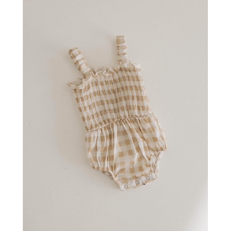 Embrace everyday adventures with our Golden Gingham Tank Romper! With convenient snap closures for easy diaper changes, this romper is perfect for any outing. The timeless golden gingham print adds a touch of charm to your little one's wardrobe. Comfort an