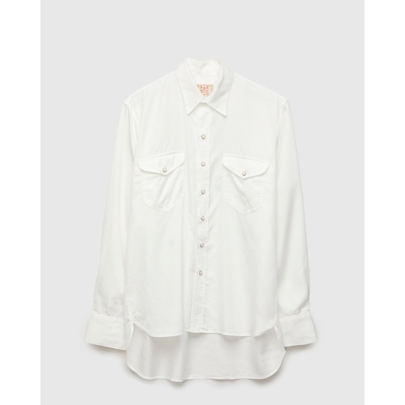 • In an effort to produce a time-accurate representation of the original American workshirt, Wythe derives its pattern from hundreds of hours scouring vintage stores, private sellers, and poring over historical photos to replicate the American spirit found in shirts worn throughout the early-to-mid 1900s. Wythe’s signature warm weather shirt features a custom-woven Tencel gabardine fabric with a sleek finish and lightweight feel, designed to mimic vintage rayon western shirts. The shirts come fitted with pearl snap buttons, an open spread collar, and feather pleats to complete the western aesthetic.