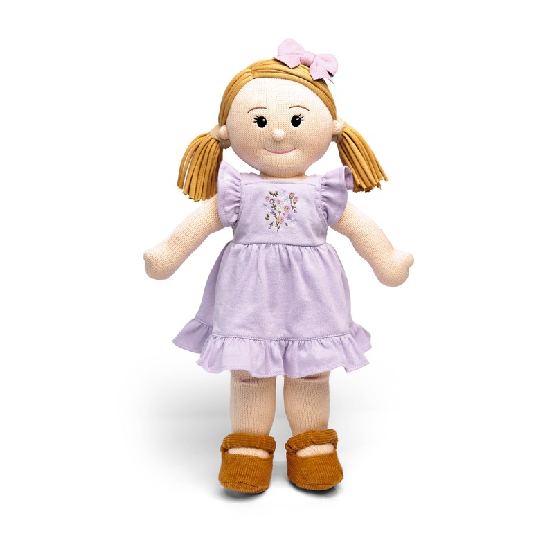 WELCOME AMELIAAmelia loves outdoor adventures all year round. In the garden, she enjoys singing and dancing with friends by her favorite flowers, peonies. Amelia is a ray of sunshine and knows how to put a smile on your face! Amelia comes dressed in a lave