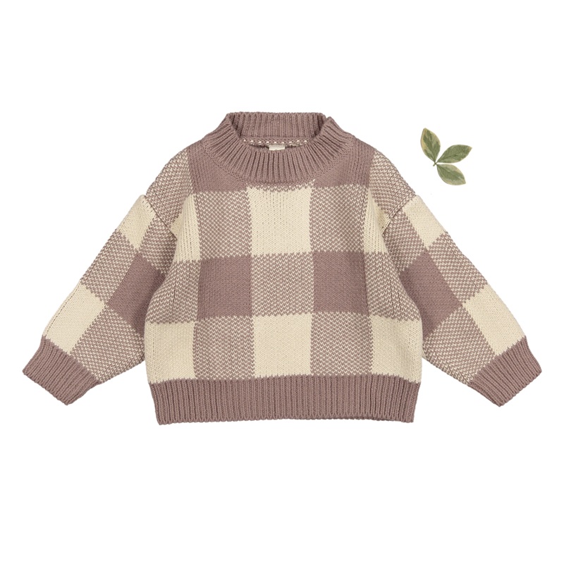 Our gingham knit sweater, made of 100% cotton, has a classic oversized style that pairs well with everything.
