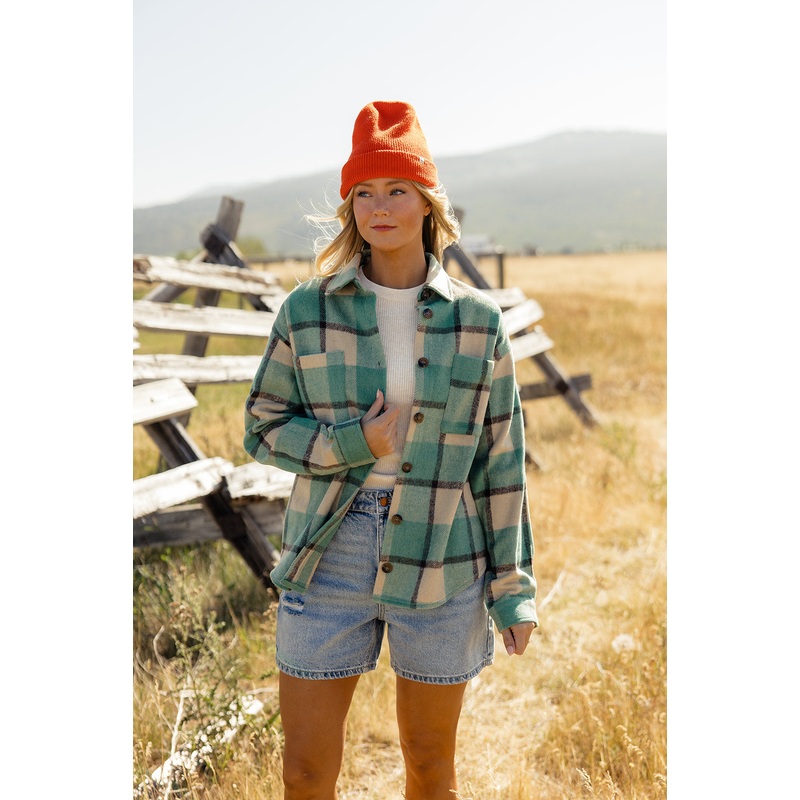 This plaid shacket features the cutest Fall colors. Featuring thick material, pockets, and functional buttons, the Make or break Jacket is the perfect thing to throw over all your outfits this season!unlined// paired with the corbett classic sweater in ivo