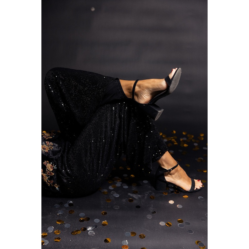 The perfect piece for your holiday parties! Featuring an elastic waistband, sequin details, + a high rise fit, the Meira Shimmer Pants are to die for. Pair with your favorite sweaters or tees and create a look that is all your own.fully linedpockets// pair