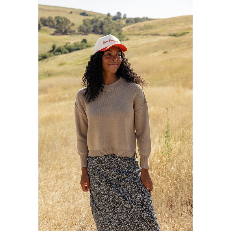 This simple sweater is one to keep your eye on. It's so easy to pair with all of your favorite bottoms, including our fav skirt! Featuring a ribbed neckline and small side slits, the Miles City Sweater is a piece you will have for years.medium weight// pai