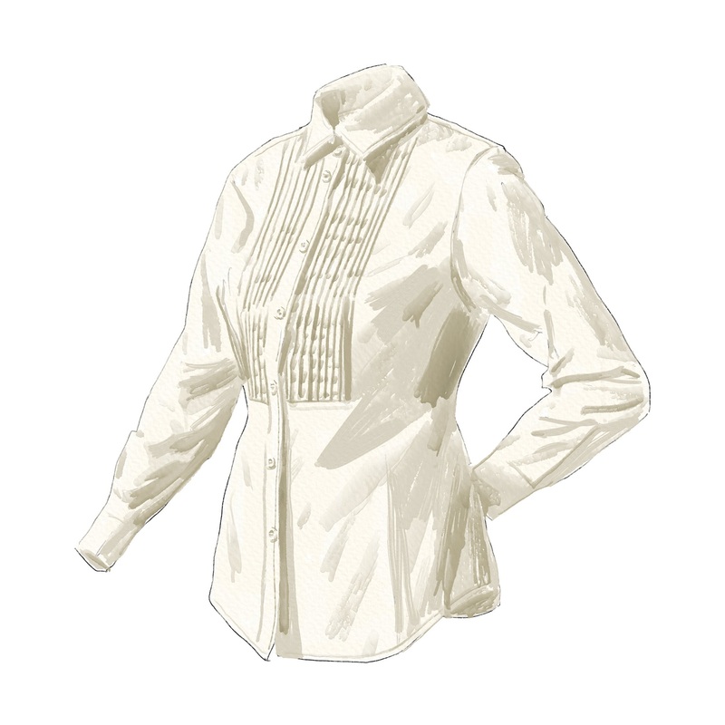 The New Tuxedo Blouse (No. J7156). Classic longsleeve tuxedo blouse, woven with softness and freedom in mind. The detailspure cotton poplin, pieced-in bib, point collar. Dietrich would admire your utter disregard for boundaries. Unlined. Shell buttons. Imp