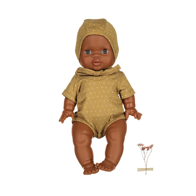 Our lovely little romper and bonnet set for Minikane or Miniland Dolls is so soft and easy to dress for little hands. Your little one will love matching her doll!